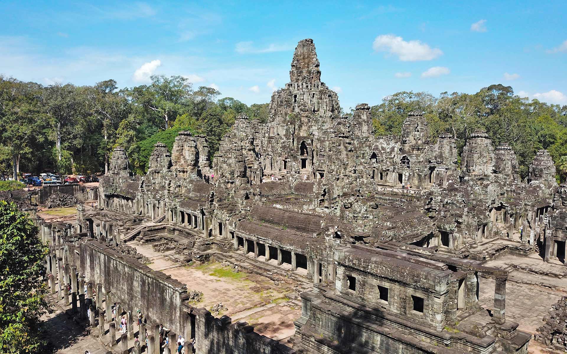 Next, visit the ancient city of Angkor Thom, entering through the impressive South Gate. Explore Bayon Temple, known for its 200 serene smiling faces, and walk past the Terrace of the Elephants.
